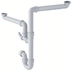 GEB SPOELBAKSIFON V 2 BAKKEN - GEB dubb sifon, pp (PP), wit, aansl afvoer, aansl sifon-plug