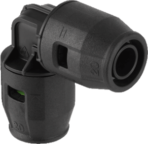 Geberit Pushfit fitting met 2 aansluitingen 1-delig, lengte 98mm, knie, uitwendige buisdiameter aansluiting 16mm, nom. diameter aansluiting 1 DN 12, aansluiting 1 polyvinylidenefluoride (P, uitwendige buisdiameter aansluiting 16mm, aansluiting 1 insteek, nom. diameter aansluiting 2 DN 12,