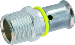 Wavin Tigris Gas fitting met 2 aansluitingen 1-delig, lengte 49mm, recht, uitwendige buisdiameter aansluiting 20mm, nom. diameter aansluiting 1 1/2" (15), aansluiting 1 messing, uitwendige buisdiameter aansluiting 21.2mm, aansluiting 1 persmof, nom. diameter aansluiting 2 DN 15,
