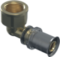 Wavin Tigris M5 fitting met 2 aansluitingen 1-delig, knie, uitwendige buisdiameter aansluiting 16mm, nom. diameter aansluiting 1 1/2" (15), aansluiting 1 messing, uitwendige buisdiameter aansluiting 21.2mm, aansluiting 1 persmof, nom. diameter aansluiting 2 DN 12,