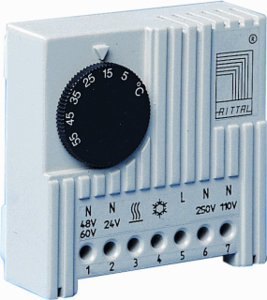 Rittal SK thermostaat/hygrostaat kast/lessenr, uitvoering thermostaat, temperatuur instelbereik 5 - 60°C, overig, uitvoering schakelelement wisselcontact (NO/NC), nom. (meet)spanning 230V