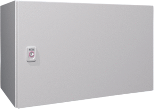 Rittal AX schakelkast leeg, staal, (hxbxd) 380x600x350mm, met montageplaat, beschermingsgraad (IP) IP66, vrijstaand, 1 deuren, kwaliteit overig, slagvastheid IK10, 1 sloten, warmteverlies-vermogen (?T=20K) vol 103W, beschermingsgraad (NEMA) 4, uitvoering oppervlakte poedercoating