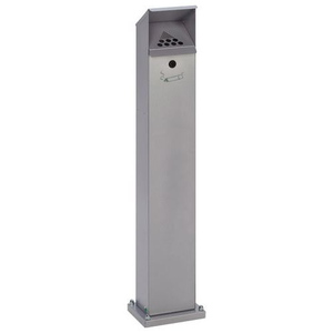 Asbak op voet, gemaakt gegalvaniseerd plaatstaal. Poedercoating van epoxy-polyester of rvs. De asbak is voorzien van een slot (1 sleutel) en een bevestigingsplaat.