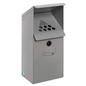 Muurasbak voor buiten met houder en beschermingsdak. Gemaakt van gegalvaniseerd plaatstaal, met hoogwaardige poedercoating van in de oven gebakken en uv-bestendig epoxy-polyester. De asbak is beveiligd door een sleutel voor toegang door geautoriseerde personen.