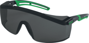 Uvex Astrospec 2.0 9164-145 veiligheidsbril, frame kunststof, frame zwart/groen, glas polycarbonaat (PC), glazen grijs, anticondens, met zij -en bovenkleppen, verstelbaar, grootte universeel, verduisterd 5%, norm 5 W 1 FTKN CE, lasbril