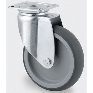 Zwenkwiel, INST. PP., Max. belasting: 100 kg, Ø: 125 mm, Wiel/Zwenkwielen: Bokwiel/zwenkwiel, Wiel/Zwenkwielen kracht (Reeks): 101 - 200 kg, Wiel/Zwenkwielen diameter (Reeks): 101 - 200 mm, Model: Zwenkwiel met plaat, Breedte loopvlak: 32 mm, Totale hoogte: 160 mm, Type naaf: Glijlager, Hartafstand bevestigingsgaten: 61,5/56 x 51,5/46,5 mm, Uitlading: 41 mm, Rem: nee, Gewicht: 675 g, Type nr.: 2470PJO125P50, Bevestigingsoog Ø: 8.5 mm, Type bevestiging: Staalplaat, Loopvlak materiaal: Rubber, Wielframe materiaal: Polypropyleen, Breedte grondplaat: 67 mm, Lengte grondplaat: 77 mm, Kleur: Grijs