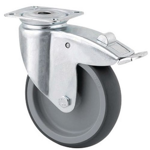 Zwenkwiel met plaat, Max. belasting: 80 kg, Ø: 100 mm, Wiel/Zwenkwielen: Bokwiel/zwenkwiel, Wiel/Zwenkwielen kracht (Reeks): 1 - 100 kg, Wiel/Zwenkwielen diameter (Reeks): 1 - 100 mm, Type loopvlak: Rubber, Model: Zwenkwiel met rem, Breedte loopvlak: 32 mm, Totale hoogte: 135 mm, Type naaf: Glijlager, Hartafstand bevestigingsgaten: 61,5/56 x 51,5/46,5, Uitlading: 43.5 mm, Rem: ja, Gewicht: 0.759 kg, Type bevestiging: Met grondplaat, Gebruik: Collectiviteit, Wielframe materiaal: Polypropyleen, Diameter naaf: 8.5 mm, Breedte grondplaat: 67 mm, Lengte grondplaat: 77 mm, Kleur: Grijs