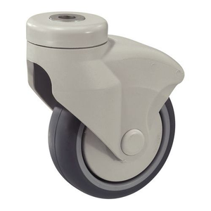 Zwenkwiel met boutgat en nylon frame, Max. belasting: 100 kg, Ø: 125 mm, Wiel/Zwenkwielen: Bokwiel/zwenkwiel, Wiel/Zwenkwielen kracht (Reeks): 1 - 100 kg, Wiel/Zwenkwielen diameter (Reeks): 101 - 200 mm, Type loopvlak: Rubber, Model: Zwenkwiel, Breedte loopvlak: 32 mm, Totale hoogte: 162 mm, Ø grondplaat: 60 mm, Boutgat Ø: 12 mm, Type naaf: Glijlager, Uitlading: 43 mm, Gewicht: 0.5 kg, Type bevestiging: Met boutgat, Gebruik: Collectiviteit
