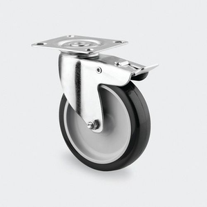 Zwenkwiel, INST. PP, Max. belasting: 60 kg, Ø: 75 mm, Wiel/Zwenkwielen: Bokwiel/zwenkwiel, Wiel/Zwenkwielen kracht (Reeks): 101 - 200 kg, Wiel/Zwenkwielen diameter (Reeks): 1 - 100 mm, Model: Zwenkwiel met dubbele rem met loopvlak van gespoten polyurethaan, Breedte loopvlak: 25 mm, Totale hoogte: 100 mm, Type naaf: Glijlager, Hartafstand bevestigingsgaten: 48/38 x 48/38 mm, Uitlading: 25 mm, Rem: ja, Gewicht: 298 g, Type nr.: 1477PAO075P40, Bevestigingsoog Ø: 6.3 mm, Type bevestiging: Staalplaat, Lengte grondplaat: 60 mm