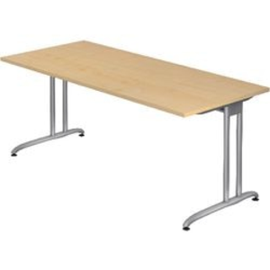 Hammerbacher Bureau VBS19/3. Hoogteverstelbaar: niet hoogteverstelbaar. Materiaal: melamine. Zelfmontage: : ja. Stapelbaar: nee. Type voet: t-voet. Framekleur: zilver. Kleur: esdoorn. Wieltjes: 4. Hoogte: 720 mm. Breedte: 1800 mm.
