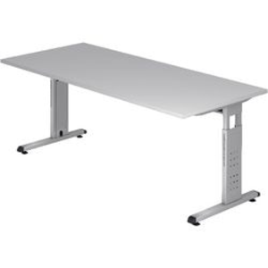 Hammerbacher Bureau VOS19/5. Hoogteverstelbaar: hoogteverstelbaar. Materiaal: gemelamineerde spaanplaat. Zelfmontage: ja. Framekleur: wit aluminium. Kleur: grijs. Hoogte: 850 mm. Breedte: 1800 mm.