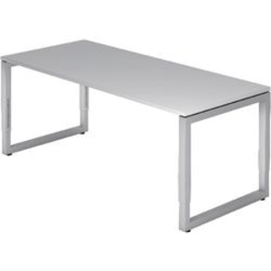 Hammerbacher bureau VRS19/5. Materiaal: gemelamineerd spaanplaat. Afmetingen: 180 x 80. In hoogte verstelbaar: ja. Kleur: grijs. Kleur frame: zilver.