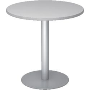Hammerbacher pilaar tafel STF08. Materiaal: melamine. Stapelbaar: nee. In hoogte verstelbaar: nee. Type voet: pilaar. Zelfmontage: ja. Hoogte: 800 mm. Breedte: 800 mm. Kleur frame: zilver. Kleur: grijs.