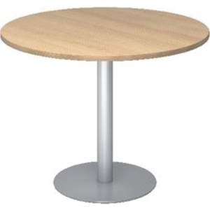 Hammerbacher pilaar tafel STF10. Materiaal: melamine. Stapelbaar: nee. In hoogte verstelbaar: nee. Type voet: pilaar. Zelfmontage: ja. Hoogte: 800 mm. Breedte: 800 mm. Kleur frame: zilver. Kleur: beuken.