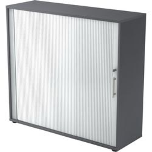 Hammerbacher Archiefkast Grijs. Inclusief: 1 x Kast. Aantal legborden: 2. Afsluitbaar: Ja. Breedte: 1200 mm. Deuren: Inclusief. Deurtype: Roldeur. Diepte: 400 mm. Dikte plank: 19 mm. Hoogte: 1100 mm. Inclusief: 1 x Kast. Kleur: Grafiet. Kleur legborden: Grijs. Ladedetails: Niet van toepassing. Lades: Niet van toepassing. Merk: Hammerbacher. Product Type: Archiefkast. Producttype Free Text: Archiefkast. VE: Stuk. Zelfmontage: Ja.