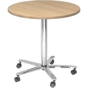 Hammerbacher pilaar tafel VST08/E/C. Materiaal: melamine. Stapelbaar: nee. In hoogte verstelbaar: nee. Type voet: pilaar, stervormig. Aantal zwenkwielen: 5. Zelfmontage: ja. Hoogte: 720 mm. Breedte: 800 mm. Kleur frame: zilver. Kleur: beuken.