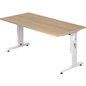 Hammerbacher bureau VOS16/E/W. Materiaal: melamine. Zelfmontage: ja. Type voet: T-voet. Stapelbaar: ja. Number of castors: 4. Hoogte: 800 mm. Breedte: 1600 mm. Framekleur: wit. Kleur: eiken.