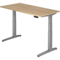 Hammerbacher Zit-sta-bureau XBHM Eiken, zilver 1.600 x 800 x 65 - 130 mm