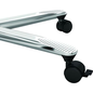 Tafel met telescopische poten - 80x80 cm. Met een esdoorn tafelblad. Tafel met afgeronde rand. Traploos in hoogte verstelbaar. Chroom frame. Eenvoudig te monteren.