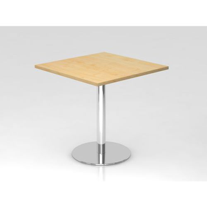 Statafel vierkant 80x80cm, Type onderstel: I-poot, Breedte: 800 mm, Totale diepte: 800 mm, Vorm: Vierkant, Tafelblad materiaal: Gemelamineerd, Tafelblad kleur: Bruin/beige, Onderstel kleur: Zilver, Aantal laden: 0, Aantal aanpasbare laden: 0, Montage: Zelfbouw, Stapelbaar: nee, Tafelbreedte: 80 mm
