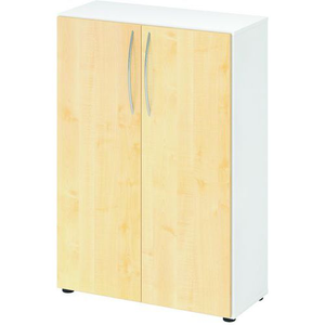 Draaideurkast diepte 34.6 cm 4550 BM - 3 niveaus Draaideuren en 2 legborden. Ruimte met 3 rughoogtes. 4 onderpoten. In hoogte verstelbaar. Afneembaar omdat de kasten stapelbaar zijn.