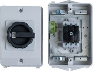 Asn - Sontheimer lastscheider, breedte 100mm, apparaatbouwvorm compleet apparaat in behu, uitvoering als hoofdschakelaar, uitvoering als werkschakelaar, vergrendelbaar, nom. continustroom Iu 16A, 3 polen, beschermingsgraad frontzijde (IP) IP65, bedieningselement zwart,