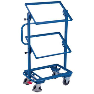 Wagen voor Euronorm-bakken, met een mechanisch gelaste constructie van buisstaal. Hellingshoek van de plateaus: 15° of 30°. Schok- en krasbestendige epoxycoating. Wielen met precisiekogellagers en niet-strepende banden van thermoplastisch rubber. Let op: zelf te monteren product. Eenvoudig te monteren met het meegeleverde gereedschap.