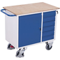Werkplaatswagen met 6 laden, Totale hoogte: 960 mm, Aantal laden: 6, Totale breedte: 1100 mm, Totale diepte: 600 mm, Dikte tafelblad: 20 mm, Max. belasting per lade: 25 kg, Max. belasting: 400 kg, Aantal deuren: 1, Geleverd gemonteerd: ja, Zwenkwiel Ø: 160 mm, Max. belasting per legbord: 30 kg, Nuttige breedte lade: 290 mm, Special Covid-19: nee, Aantal legborden: 3, Aantal zwenkwielen: 4, Werkbank blad materiaal: Beuk multiplex, Gewicht: 86 kg, Wiel loopvlak: Rubber, Type wiel: Thermoplastisch rubber, Type sluiting: Met sleutel