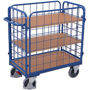 Etagewagen laag Uitvoering: * gelast van stalen buis en profielstaal * geschroefde constructie Kleur: RAL 5010 gentiaan blauw, gepoedercoat Wielset: Bandage van thermoplastisch rubber op kunststof velg met precisie kogellager, grijs, streeploos, 2 zwenkwielen met centrale EasySTOP rem en 2 bokwielen, zwenkwielen met voetbeschermer