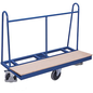 Panelenwagen met rhombische wielen, Max. belasting: 500 kg, Totale breedte: 680 mm, Model: Paneelwagen, Nuttige breedte plateau: 370 mm, Wiel loopvlak: Thermoplastisch elastomeer, Zwenkwiel Ø: 200 mm, Type wiel: Draaibaar en vast, Onderstel materiaal: Poeder coating, Montage: Zelfbouw, Laadhoogte: 345 mm, Plateau materiaal: Staal, permanent gelast, Breedte loopvlak: 370 mm, Handgreep hoogte: 91.5 cm, Type naaf: Kogellager, Coating: Gelakt, Frame kleur: Blauw