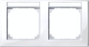 Schneider Electric M M-Smart afdekraam schakelmateriaal, kunststof, wit, (bxhxd) 80.5x151.7x10.1mm, uitvoering oppervlakte glanzend, montagerichting horizontaal, tekstveld/beschrijvingsvlak, 2 eenheden, beschermingsgraad (IP) IP20, 2 eenheden horizontaal, slagvastheid IK02, RAL-nummer 9010,