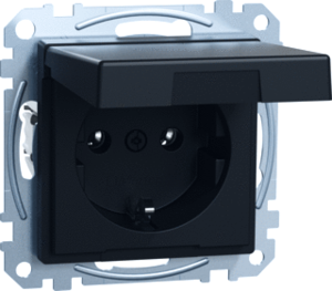 Schneider Electric M Systeem M wandcontactdoos (wcd schakelmat.), zwart, uitvoering overig, 2 actieve contacten (rond), 1 eenheid, 1 fasen, aansluitwijze steekklem, met klapdeksel, RAL-nummer 9005, geïsoleerde montage