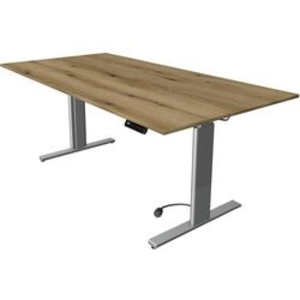 Kerkmann Zit-sta-bureau. Basis productkleur: Zilver. Breedte: 2000 mm. Diepte: 1000 mm. Gewicht: 51100 g. Hoogte: 1200 mm. Hoogteverstelbaar: Elektrisch Hoogteverstelbaar. Inclusief: 1 x Desktop, 1 x Frame, Zijpanelen, Elektrische componenten (bijv. handset, controlebox). Kleur: Eiken, Zilver. Materiaal wissellijst: Staal. Merk: Kerkmann. Productlijn: Move 3. Producttype: Zit-sta-bureau. VE: Stuk. Vorm: Rechthoekig. Werkbladmateriaal: Spaanplaat. Zelfmontage: Ja.