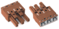 Wago Winsta Midi 770 conn. v insteekbare gebouwinstall., (hxbxl) 12.9x30x37.5mm, 3 polen, behuizing polyamide (PA), beschermingsgraad (IP) IP20, contactmateriaal cuSn, uitvoering contrastekker (female), codering/contactinzetstuk bruin, mechanische codering, 2 aansluitingen per pool,