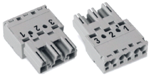 Wago Winsta Midi 770 conn. v insteekbare gebouwinstall., (hxbxl) 12.9x30x37.5mm, 3 polen, behuizing polyamide (PA), beschermingsgraad (IP) IP20, contactmateriaal cuSn, uitvoering stekker (Male), codering/contactinzetstuk grijs, mechanische codering, 2 aansluitingen per pool,
