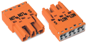 Wago Winsta Midi 770 conn. v insteekbare gebouwinstall., (hxbxl) 12.9x30x37.5mm, 3 polen, behuizing polyamide (PA), beschermingsgraad (IP) IP20, contactmateriaal cuSn, uitvoering stekker (Male), codering/contactinzetstuk oranje, mechanische codering, 2 aansluitingen per pool,