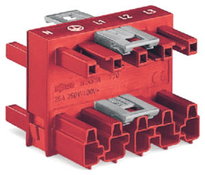Wago Winsta Midi 770 comp. verd. insteekb. gebouwinstal., (lxbxh) 46x50x36.7mm, contactmateriaal cuSn, beschermingsgraad (IP) IP20, behuizing polyamide (PA), halogeenvrij, mechanische codering, type verdeler verdeelblok, 5 ingangen, 15 uitgaande lijnen, 5 polen, codering/contactinzetstuk rood,