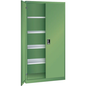 Draaideurkast (bxdxh) 1000x500x1950mm, Max. belasting: 60 kg, Totale hoogte: 1950 mm, Totale breedte: 1000 mm, Aantal legborden: 4, Totale diepte: 500 mm, Frame kleur: Groen, Type: Draaideurkast, Type sluiting: Met sleutel, Max. belasting per legbord: 60 kg, Aantal laden: 0, RAL: 6011, Geleverd gemonteerd: ja, Gerecyclede verpakkingen: 50 %, Gerecycled product: 20 %