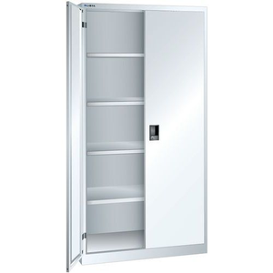 Draaideurkast (bxdxh) 1000x500x1950mm, Max. belasting: 60 kg, Totale hoogte: 1950 mm, Totale breedte: 1000 mm, Aantal legborden: 4, Totale diepte: 500 mm, Frame kleur: Wit, Type: Draaideurkast, Type sluiting: Met sleutel, Max. belasting per legbord: 60 kg, Aantal laden: 0, RAL: 9010, Geleverd gemonteerd: ja, Gerecyclede verpakkingen: 50 %, Gerecycled product: 20 %