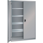 Draaideurkast (bxdxh) 1250x500x1950mm, Max. belasting: 60 kg, Totale hoogte: 1950 mm, Totale breedte: 1250 mm, Aantal legborden: 4, Totale diepte: 500 mm, Frame kleur: Grijs/zilver, Kleur deur: Grijs/zilver, Type: Draaideurkast, Type sluiting: Met sleutel, Gewicht: 710 g, Max. belasting per legbord: 60 kg, Aantal laden: 0, Aantal deuren: 2, Kleur: Grijs/zilver, Aantal vakken/kolom: 4, Geleverd gemonteerd: ja, Nuttige hoogte: 1835 mm, Gerecyclede verpakkingen: 50 %, Gerecycled product: 20 %, Nuttige diepte: 50 cm, Frame materiaal: Staal