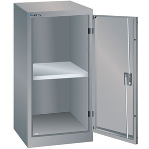 Draaideurkast (bxdxh) 500x500x1000mm, Max. belasting: 60 kg, Totale hoogte: 1000 mm, Totale breedte: 500 mm, Aantal legborden: 1, Totale diepte: 500 mm, Frame kleur: Grijs/zilver, Type: Draaideurkast, Type sluiting: Met sleutel, Max. belasting per legbord: 60 kg, Aantal laden: 0, Geleverd gemonteerd: ja, Gerecyclede verpakkingen: 50 %, Gerecycled product: 20 %