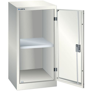 Draaideurkast (bxdxh) 500x500x1000mm, Max. belasting: 60 kg, Totale hoogte: 1000 mm, Totale breedte: 500 mm, Aantal legborden: 1, Totale diepte: 500 mm, Frame kleur: Lichtgrijs, Type: Draaideurkast, Type sluiting: Met sleutel, Max. belasting per legbord: 60 kg, Aantal laden: 0, RAL: 9002, Geleverd gemonteerd: ja, Gerecyclede verpakkingen: 50 %, Gerecycled product: 20 %