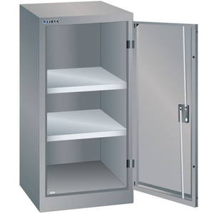 Draaideurkast (bxdxh) 500x400x1000mm, Max. belasting: 60 kg, Totale hoogte: 1000 mm, Totale breedte: 500 mm, Aantal legborden: 2, Totale diepte: 400 mm, Frame kleur: Grijs/zilver, Type: Draaideurkast, Type sluiting: Met sleutel, Max. belasting per legbord: 60 kg, Aantal laden: 0, Geleverd gemonteerd: ja, Gerecyclede verpakkingen: 50 %, Gerecycled product: 20 %