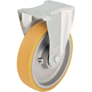 Bokwiel met schroefbevestiging van plaatstaal, geschikt voor zware lasten. Wiel van elastomeer en polyurethaan Blickle Extrathane® voor een geruisloze werking. Geringe weerstand bij rijden en zeer slijtvast. Frame van grijs gietijzer.