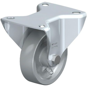 Wiel van robuust gietijzer. Oppervlak van lagers en zijkanten bewerkt met smeernippel. Zeer lage weerstand bij rijden en zwenken. Extreem slijtvast, geverfd.