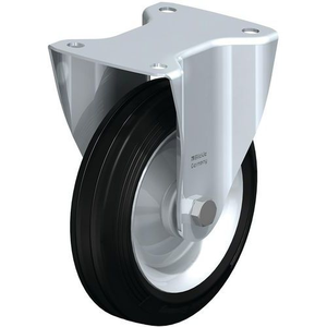 Bokwiel middelzware uitvoering met bevestigingsplaat Comfort, Max. belasting: 300 kg, Ø: 180 mm, Wiel/Zwenkwielen: Bokwiel/zwenkwiel, Wiel/Zwenkwielen kracht (Reeks): 201 - 300 kg, Wiel/Zwenkwielen diameter (Reeks): 101 - 200 mm, Gebruikszwenkwiel: Steiger, Type loopvlak: Massief rubber, Type naaf: Rollager, Breedte loopvlak: 50 mm, Totale hoogte: 215 mm, Hartafstand bevestigingsgaten: 105 x 75–80 mm, Kleur: Zwart, Min. gebruikstemperatuur: -25 °C, Max. gebruikstemperatuur: 80 °C, Rem: nee, Gewicht: 2300 g, Type nr.: B-RD 182R, Bevestigingsoog Ø: 11 mm, Breedte grondplaat: 140 mm, Lengte grondplaat: 100 mm