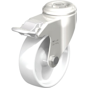 Apparatenzwenkwiel rvs met boutgat met rem stop-fix wiel van polyamide, Max. belasting: 120 kg, Ø: 100 mm, Wiel/Zwenkwielen: Bokwiel/zwenkwiel, Wiel/Zwenkwielen kracht (Reeks): 101 - 200 kg, Wiel/Zwenkwielen diameter (Reeks): 1 - 100 mm, Omgeving voor wielgebruik: Witte kamer, Type loopvlak: Polyamide, Type naaf: Glijlager, Breedte loopvlak: 32 mm, Totale hoogte: 133 mm, Boutgat Ø: 13 mm, Min. gebruikstemperatuur: -25 °C, Max. gebruikstemperatuur: 80 °C, Uitlading: 40 mm, Rem: ja, Gewicht: 500 g, Type nr.: LKRXA-PO 101G-FI, Ø grondplaat: 57 mm