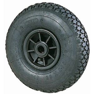 Wiel met noppen voor steekwagen met luchtkamer, uitstekende comfortabele rijeigenschappen en zeer hoge bescherming van vloeren. De velg van polypropyleen uit één stuk is ongevoelig voor schokken en trillingen. De luchtband is ongevoelig voor roestvorming.