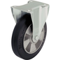 Wiel met frame van diepgetrokken plaatstaal en aluminium velg. Schokbestendig. Met geschroefde as. Licht wiel van gespoten aluminium. Rolt geruisloos en soepel dankzij de elastische massieve rubberband. Gevulkaniseerde band die nooit van de velg zal lopen.