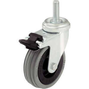 Zwenkwiel met stiftbevestiging M10 x 30 mm, Max. belasting: 40 kg, Ø: 50 mm, Wiel/Zwenkwielen: Bokwiel/zwenkwiel, Wiel/Zwenkwielen kracht (Reeks): 1 - 100 kg, Wiel/Zwenkwielen diameter (Reeks): 1 - 100 mm, Type loopvlak: Rubber, Model: Zwenkwiel met rem, Breedte loopvlak: 18 mm, Totale hoogte: 69 mm, Ø grondplaat: 43 mm, Type naaf: Glijlager, Uitlading: 25 mm, Gewicht: 0.21 kg, Type bevestiging: Met draadeind, Gebruik: Collectiviteit, Lengte draadeind: 30 mm, Draad Ø: M10